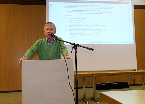 Unser Ortsvorsteher und Mitinitiator der Genossenschaft Dieter Tourte begrüßt die interessierten Bürger.